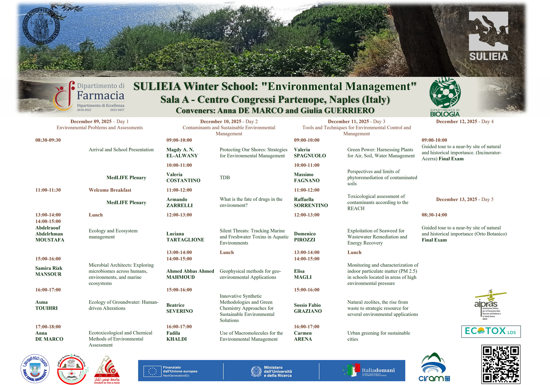 The Interdepartmental Research Center for the Environment (CIRAm) and the Department of Biology of Federico II University (Italy) will organize the SULIEIA Winter School alongside the MedLIFE-26: